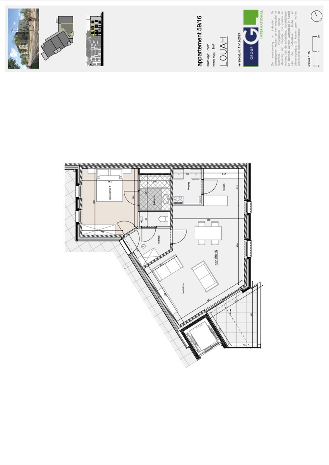 Dit appartement van 75m² omvat 1 slaapkamer en een mooi terras van 8m².