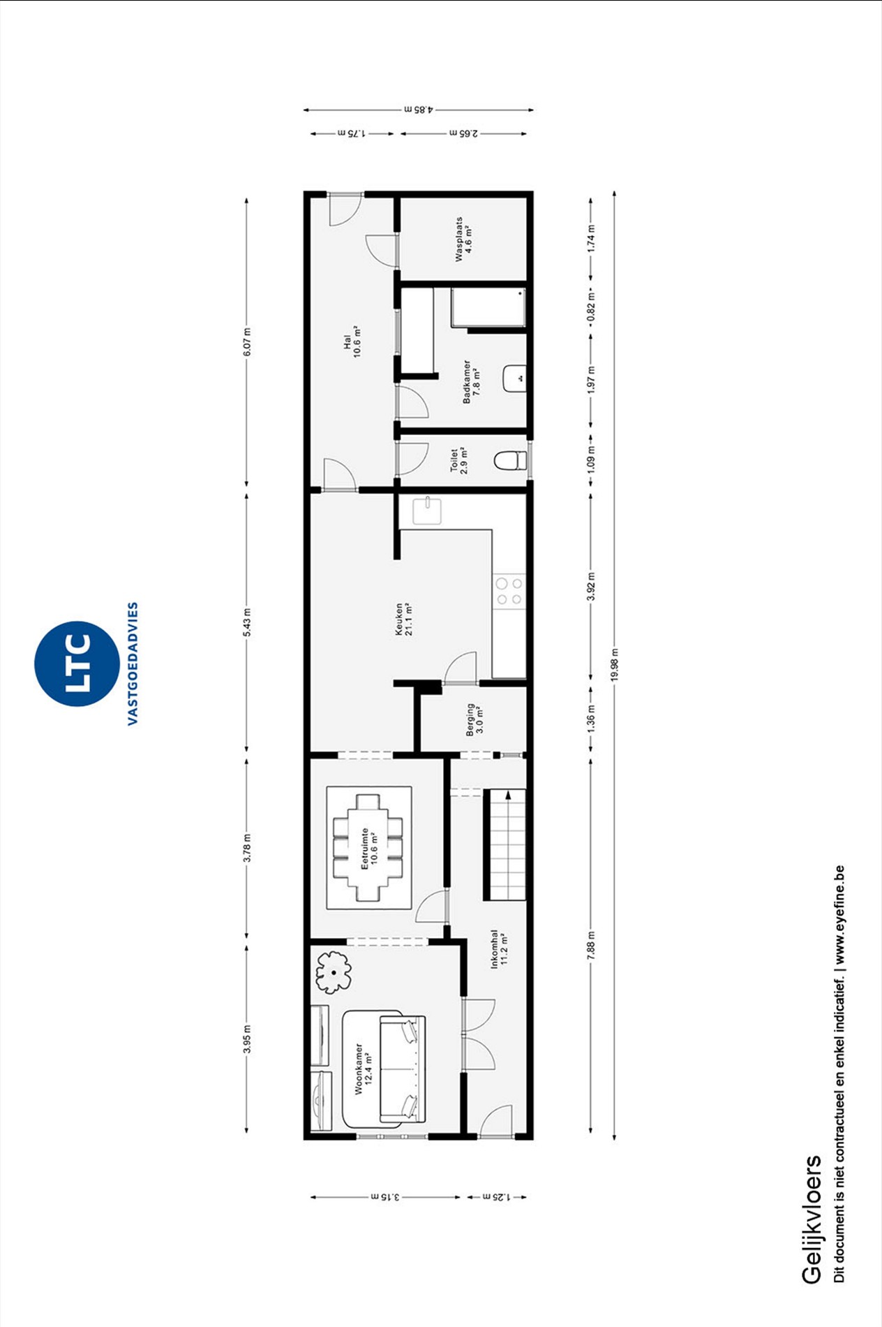 | Keuken: | 19 m², Gesloten keuken, Ingericht met toestellen |